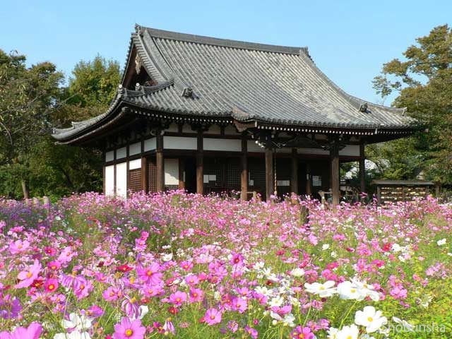 9月上旬〜11月中旬には約15万本のコスモスが咲き誇る寺