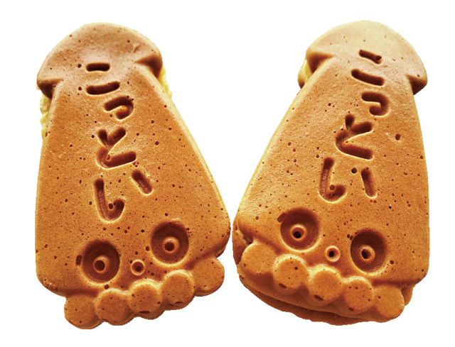 こっとい焼き いかの形をした回転焼き。こしあんとクリームがある