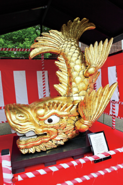天守閣5階には、またがって記念撮影ができる実物大金鯱模型がある