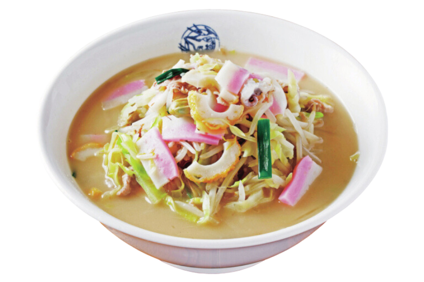 豚骨や鶏ガラを混ぜてつくるスープと、ふんだんな海の幸と野菜が、独特のうまみを生む長崎ならではの麺料理です。