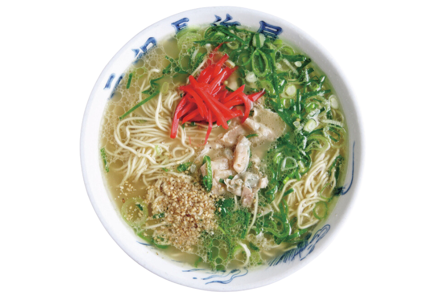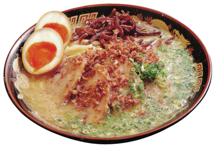 豚骨ベースに魚介の風味を生かしたしょうゆ味が一般的でこってりとコクがあり、濃いめで辛口のラーメン。豚骨とアジの丸干しなどの魚介を使うのが特徴です。麺は加水率が低めの縮れ麺で、スープとからみ吸い込みがよく濃いめのスープと相性抜群!