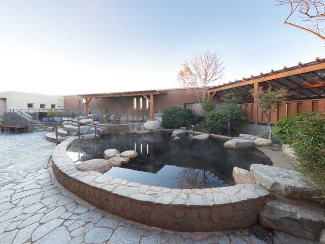 5本の自家源泉から1日に約39万リットルの温泉が湧く、湯量豊富な温泉施設。岩風呂、泡風呂、打たせ湯が揃う。山の中腹にあるので眺望もよく露天風呂も気持ちがいい。