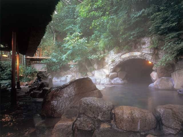 城郭風の純和風の宿。露天風呂をはじめ多彩な湯船が楽しめる。湯は肩こり、胃腸病、婦人病などにいいといわれる。入浴・休憩・食事がセットになったプランもある。