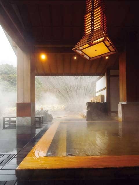 喧騒とは無縁の世界が味わえる野天風呂。秘湯を思わせる洞窟風呂やうるし塗り風呂など、浴槽ごとに違う泉質の湯を、毎日新しく入れ替えている。食事処や須雲川沿いの貸座敷が特におすすめ。