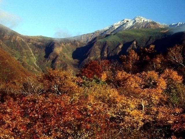 岩手、秋田、宮城の3県にまたがる栗駒山の中腹、須川高原温泉では、火山特有の高原ならではの景観にナナカマド、カエデ、モミジの色合いが実に見事。また、高原の秘湯は300年以上の歴史を誇り、リウマチなどに効くとされる強い酸性の湯が特徴。開湯以来湯治場として知られている。