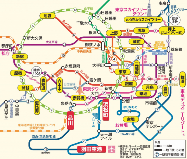 続いて、東京の主要エリアへのアクセスと移動にかかる所要時間をご紹介します。