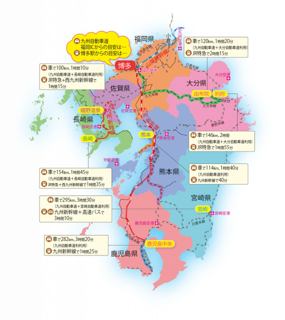 九州内 各県・各エリアへのアクセス(主要空港・駅から)