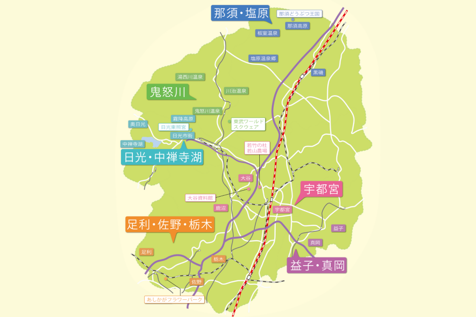 今回は、初めて栃木観光をする方に特におすすめの6エリアをご紹介。