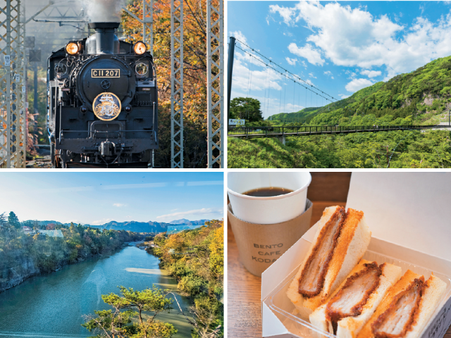 代表的スポット:益子焼の窯元、益子陶芸美術館、益子の里山カフェ、SLもおか号、井頭観光いちご園など