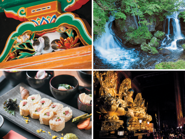 代表的スポット:日光東照宮、二荒山神社、華厳滝、中禅寺湖、いろは坂など