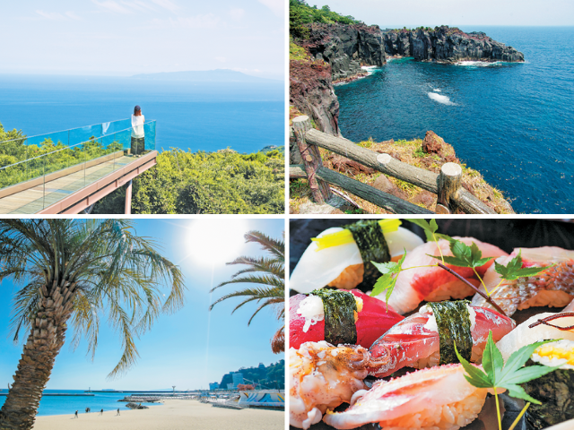 代表的スポット:熱海温泉、熱海サンビーチ、城ヶ崎海岸、修善寺温泉、伊豆ぐらんぱる公園、白浜海岸など