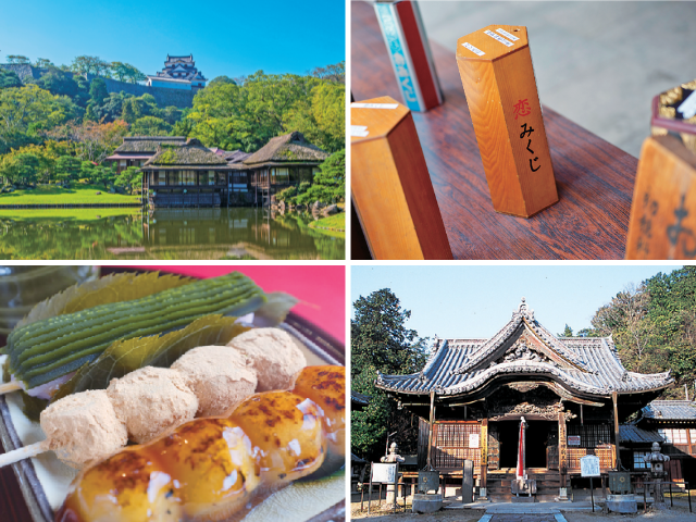 代表的スポット:彦根城、玄宮園、夢京橋キャッスルロード、四番町スクエア、彦根城博物館、多賀大社など