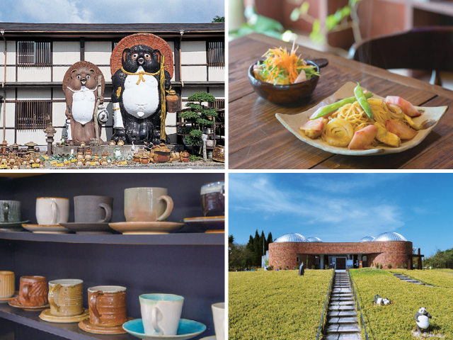 滋賀県南部に位置する信楽は、日本六古窯の一つとして知られる焼き物の町。のどかな山あいに陶房やギャラリーが点在し、登り窯や信楽焼の工房を間近で見られる、ものづくりの温もりに満ちたエリアです。町を歩けば、信楽焼の象徴・たぬきの置物があちこちでお出迎え。2020年に誕生した「MIHO MUSEUM」は周辺の自然豊かな景観も魅力で、アートと陶芸の両方を楽しめます!