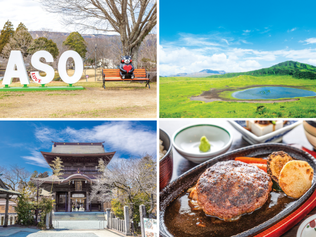 代表的スポット:大観峰、草千里ヶ浜、阿蘇中岳火口、阿蘇神社、米塚など