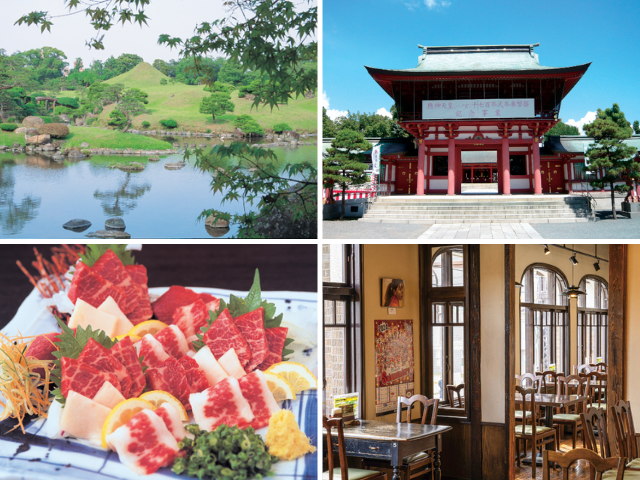 代表的スポット:熊本城、水前寺成趣園、小泉八雲熊本旧居、熊本屋台村、熊本市現代美術館など