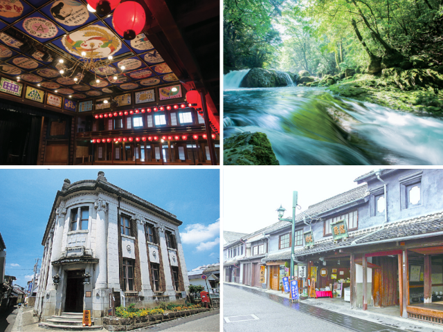 代表的スポット:八千代座、山鹿温泉 さくら湯、山鹿灯籠民芸館、平山温泉郷、菊池渓谷など