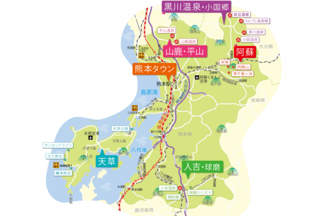 今回は、初めて熊本観光をする方に特におすすめの6エリアをご紹介。