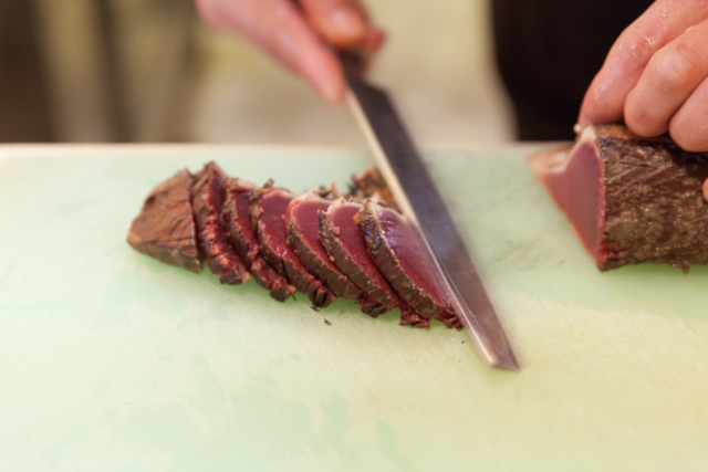 ③スライスしたら完成!仕上げの盛り付けはスタッフにお任せ
