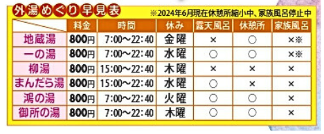 - 入浴料=大人800円、小人(1歳~小学生)400円/
