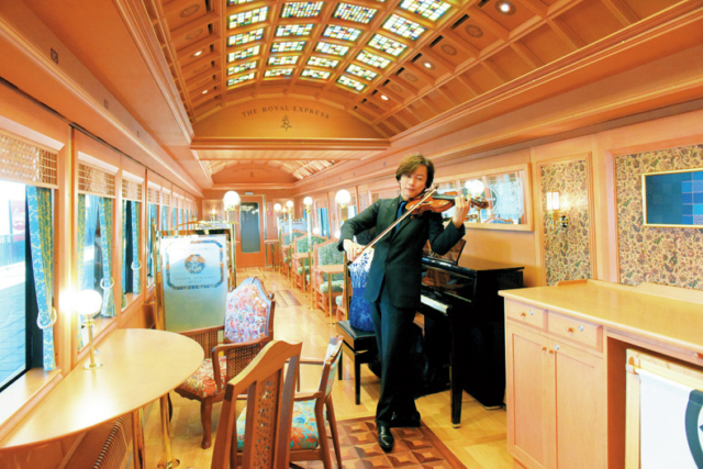 プラチナクラスでは食堂車でバイオリンの生演奏を聴くことができる