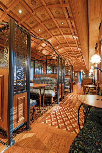 5号車 木材を組み合わせて幾何学模様を作る組子などの伝統技法がちりばめられている