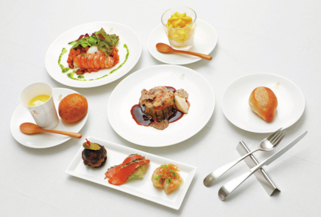 料理監修は静岡出身の山田チカラシェフ(出発駅と便により異なる)。プラチナクラスではコース仕立て、ゴールドクラスではお重で提供。