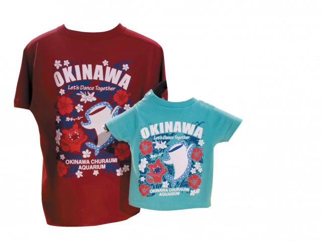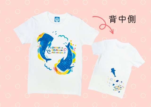 沖縄美ら海水族館で大人気のジンベエザメのTシャツ。青を生かした色使いでバックプリントも素敵。おみやげにぜひ!
