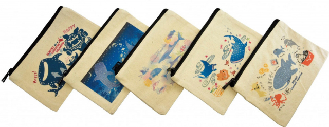 沖縄美ら海水族館の人気の生き物たちをデザイン。小物類をまとめて入れてカバンの中を整理できる。キャンバス生地なので、丈夫で長持ち