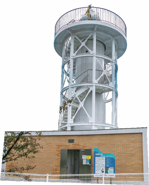 - 昭和34(1959)年に設置された、登れる灯台。日本で唯一の、外側らせん階段がついた灯台でもあります。外の階段からダイナミックな眺望を楽しんで。