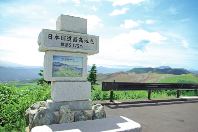 標高2172m、日本国道最高地点の碑が立つ渋峠