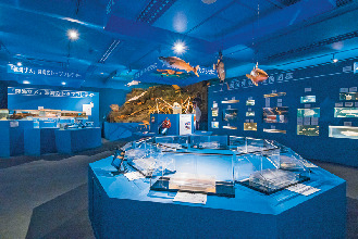御浜岬の先端にある施設がリニューアルし、海底をイメージしたディープブルーの世界へ。展示内容を大きく見直し、アプローチも一新した。