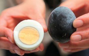 温泉地の成分が玉子の殻に付着して黒い卵に