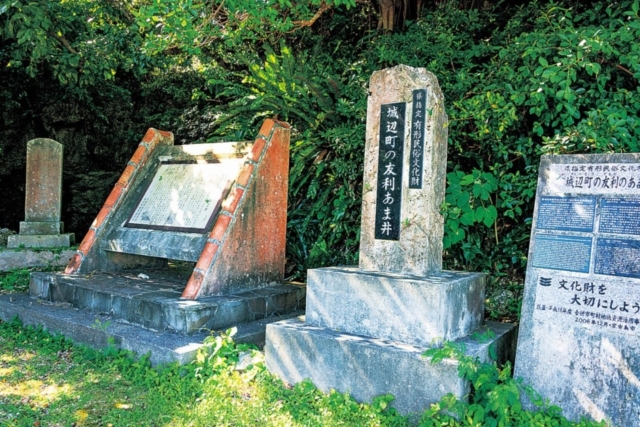森の入口に建つ「城辺町の友利のあま井」遺跡碑