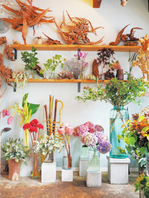 三軒茶屋に新しくできたオシャレな店内は、色とりどりの花にあふれています。