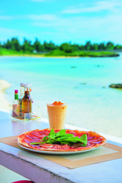 独特の美しい景観を織り成す伊良部島きっての夕日の名所、佐和田の浜に面したカフェBOTTA 。開放的なテラス席で、視界いっぱいに広がる青い海を眺めてのんびり過ごそう。