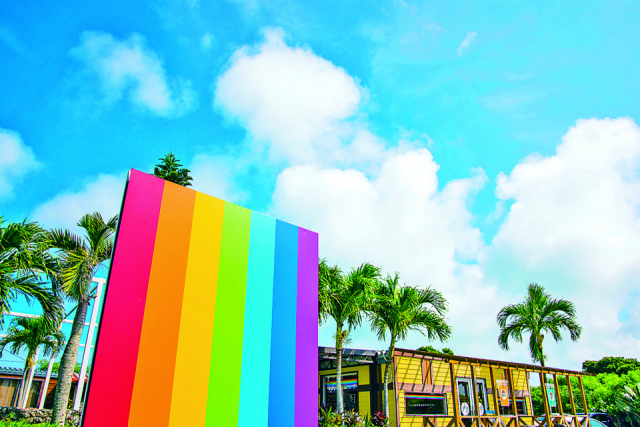 来間大橋を渡ってすぐ、来間島の入口周辺にはフォトジェニックなカフェやショップが集まっている。どの店に入ろうかと、迷ってしまうほど。写真はAOSORA PARLOR 。