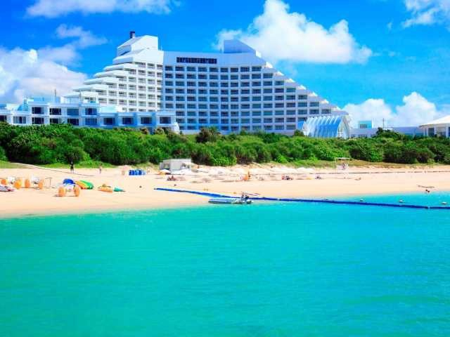 全長400mのマエサトビーチ前に建つ。オーシャンウィング棟は全室40㎡以上の広さ、くつろぎを重視したコーラルウイング棟は50㎡のゆとりある客室が自慢だ。ワンランク上のサービスを提供する、クラブインターコンチネンタルと、ベイウイングはリゾート感あふれる空間。