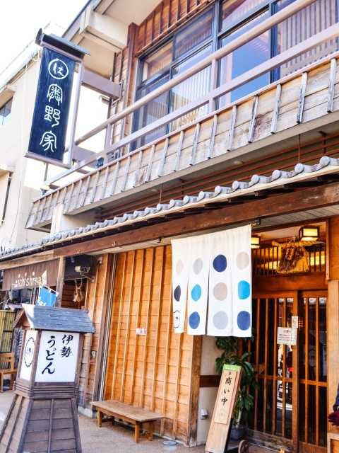 数ある伊勢うどん店のなかでも大正時代創業の老舗店。シンプルな伊勢うどんは、みりんとたまり醤油にかつおや昆布でとったダシを加えた自家製のタレが決め手。もっちりとした麺と相性抜群だ。