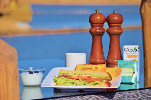 USサンドイッチとフレンチトースト、ブルーベリーヨーグルトにオレンジジュースやコーヒーが部屋に届けられる