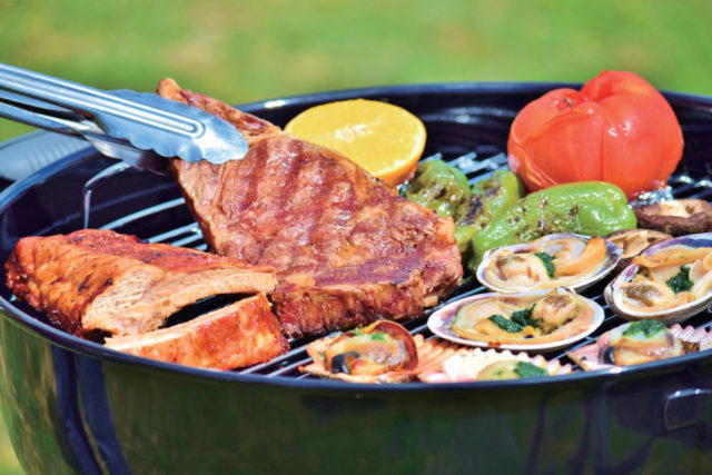 Weber社製ガスグリルで肉厚ステーキや新鮮野菜、デザートに焼きマシュマロを楽しむBBQを。焼き方の説明書付きなのもうれしい。