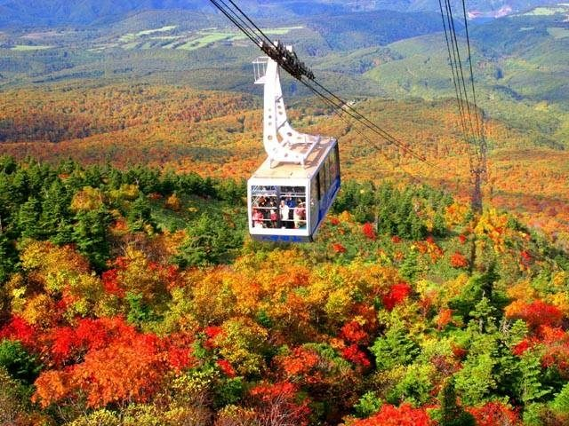 燃えるような紅葉が見られる。ロープウェーでの空中散歩もよい。