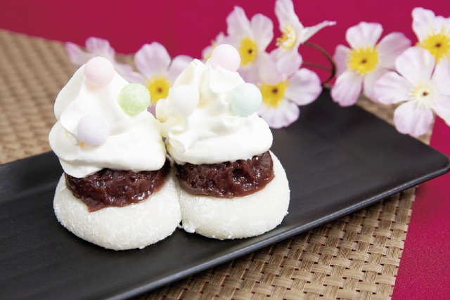 つきたてのあたたかい餅を販売。店で手作りする餡などの定番のほか、期間限定の味や添えもの(トッピング)もあり、さまざまな味で楽しめる。7~9月はかき氷と水餅のみ。