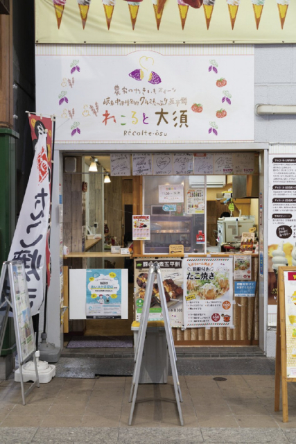 岐阜県中津川市の農場で収穫したサツマイモを使ったスイーツやドリンクをはじめ、五平餅やたこ焼きなど豊富なメニューがそろう。秋冬は安納芋や紅はるかの焼き芋が人気。