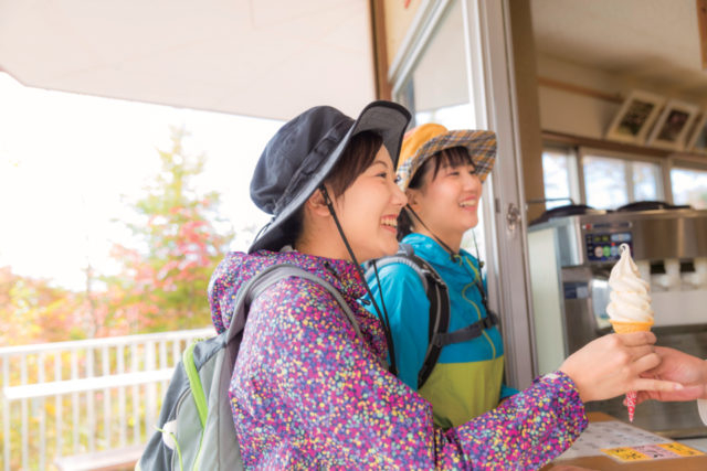 歩いて行ける総合観光案内所では濃厚な味わいで人気のソフトクリーム330円を