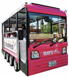 新桐生駅と桐生駅前から出る低速電動コミュニティバス。運賃無料で土・日曜、祝日のみ運行。