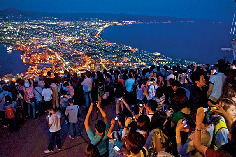 函館山山頂から眺めると左に函館港、右に津軽海峡があり、街の明かりを一層際立たせているのがわかる世界的に有名な夜の絶景スポットです。