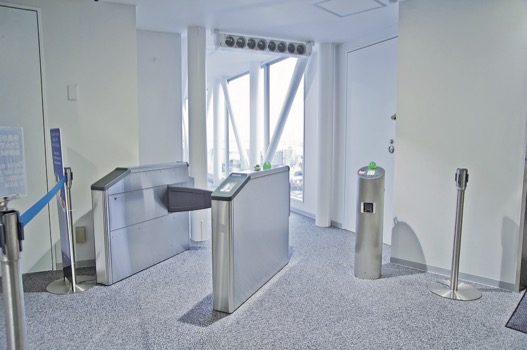 夜景撮影ではブレを防止するためにカメラを固定して撮影するのが一番だが、混み合うので三脚を立てて撮影するのが難しい場合も。手すりの上にカメラを置くと、固定されてきれいに撮影できる。