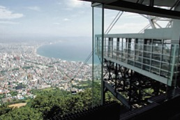 パンフレットなどでよく見る函館山からの風景は、この展望台屋上から撮影されたもの。函館の街が見渡せ、眼下には元町の教会・洋館群、天候に恵まれれば青森県の下北半島まで見えることも。屋内にはレストランや売店も併設されている。