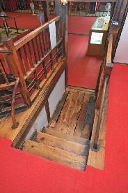 通常は普通の床だが、床板を外すと隠れた階段が現れるからくり。落ちた敵を階下で待ち構えていた家来が攻撃する。