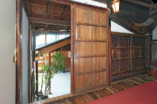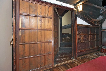二枚の戸がそれぞれ違う出口に通じているからくり。追いかけてくる敵が戸を開けて部屋に入る際、自動的に身を隠すことができる。